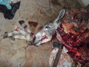 Os policiais que participaram da missão se surpreenderam com tamanha crueldade, ao visualizarem um dos animais (uma fêmea) já totalmente destroçada e restos de seu ventre com um feto bem desenvolvido, além de mais 05 (cinco) jumentos, entre fêmeas e machos que também seriam abatidos durante a madrugada.
