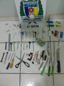 Das ruas de Araguaína a PM retirou duas pedras de crack, quatro papelotes de maconha, 16 cachimbos para uso de crack, cinco facas, tesouras, lâmina de estilete e diversos instrumentos para fabricação de cachimbos.