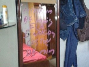 Uma mulher foi encontrada morta dentro da casa dela, em Araguaína, neste sábado (3). Ela é Cintia Gomes da Silva, de 29 anos. O principal suspeito do crime é o marido dela, Joarez Felix da Silva, de 28 anos. Segundo a polícia, após o crime, ele deixou uma mensagem no espelho do quarto, escrita com batom: “Amava demais. Ela nunca gostou de mim”.