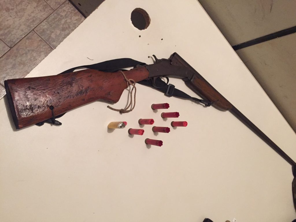 No setor Novo Horizonte, em Araguaína, foi apreendida uma espingarda calibre 28 de fabricação caseira e um cartucho CBC calibre 28 intacto, além de um facão. Segundo uma testemunha que acionou a PM via 190, as armas pertenciam a dois irmãos que teriam ido à casa de um vizinho de 43 anos e o ameaçado de morte. Os irmãos negaram a acusação, e foram todos conduzidos à Delegacia de Polícia Civil para as demais providências.