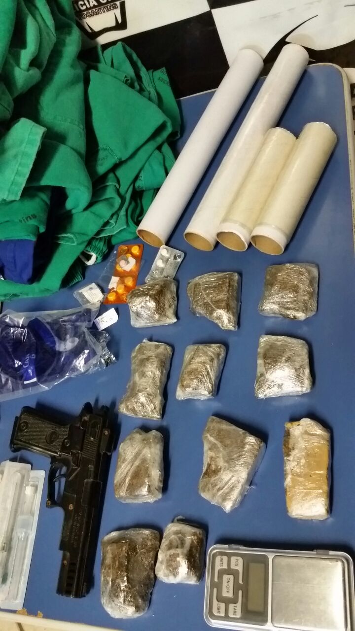 Os três indivíduos foram presos, em flagrante, pela prática dos crimes de tráfico de drogas e associação para o tráfico, sendo que na mesma ação, os policiais civis da Denarc também apreenderam diversas porções de maconha, balança de precisão, insumos para embalar a droga, um simulacro de arma de fogo, bem como uma grande quantidade de produtos hospitalares.