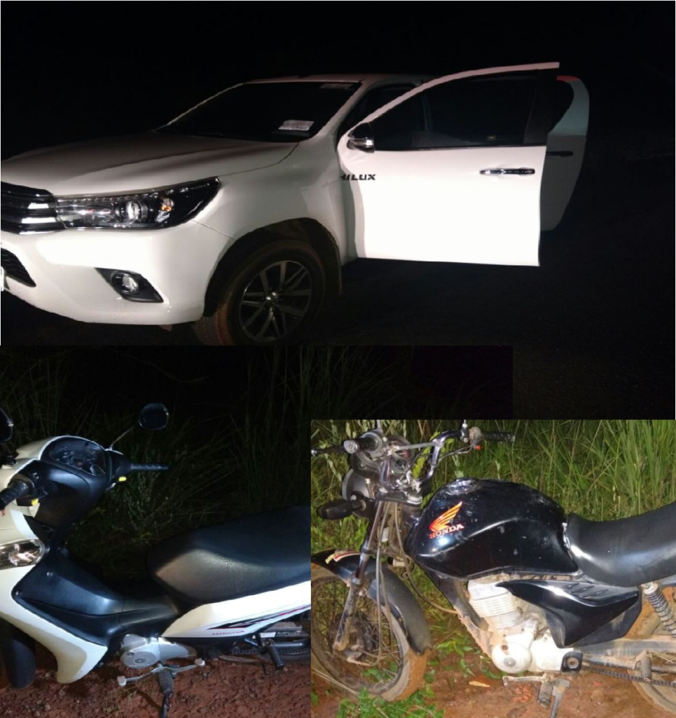 Nesta quinta-feira, 05, três veículos foram recuperados pela Polícia Militar em Araguaína pouco tempo após o roubo. Imediatamente informada, a PM localizou as duas motocicletas subtraídas no setor Entroncamento e a caminhonete Hilux roubada na zona rural do município.