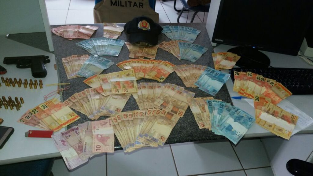 O autor, dinheiro, motocicleta e arma de fogo foram apresentados na Delegacia de Polícia Civil, onde se verificou que ele faz parte de uma quadrilha de roubo a agências bancárias no estado.