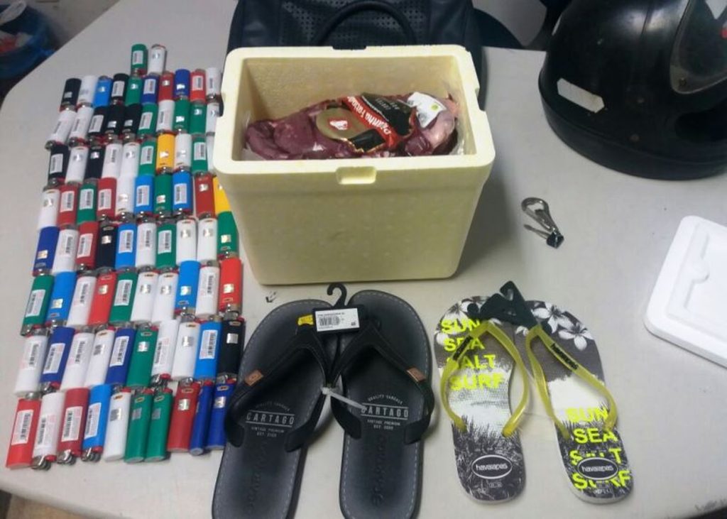 O flagrante aconteceu por volta das 11h desta quinta-feira, 25. Jaires Almeida de Araújo, de 34 anos, e Yasmin Lacerda Soares Matos, de 18 anos, foram presos após uma denúncia anônima. Com eles, a polícia encontrou 84 isqueiros, dois pares de sandálias e duas peças de picanha.