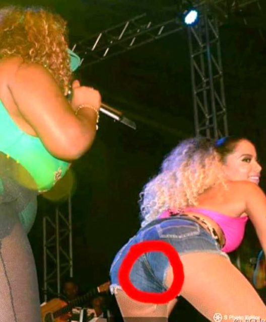 Ao que tudo indica,  o absorvente da cantora falhou deixando a artista exposta a cada vez que balançava o bumbum, como mostram as imagens: