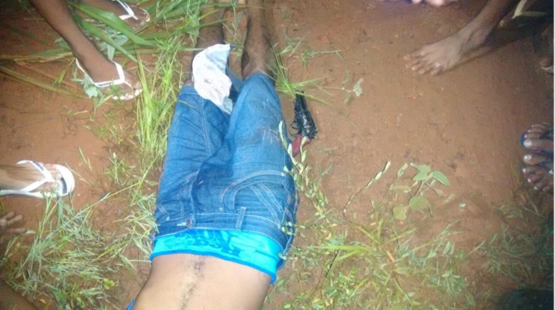 O jovem foi identificado apenas como Cézar e, junto ao seu corpo, a polícia encontrou uma réplica de arma de fogo tipo revólver ( arma de brinquedo).