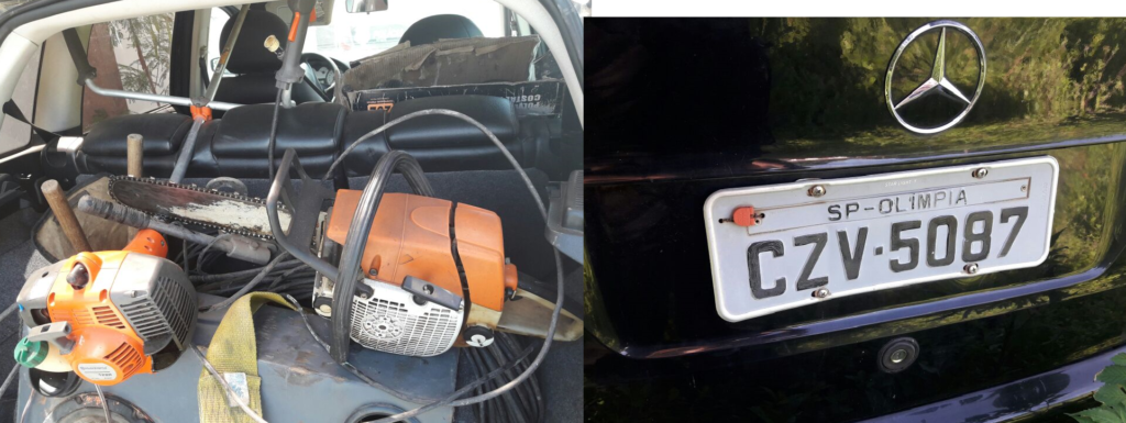 Após várias incursões, os policiais apreenderam três veículos clonados, uma espingarda, uma réplica de pistola, facas, além de vários equipamentos furtados da empresa, dentre eles; máquina de solda, furadeira e gerador