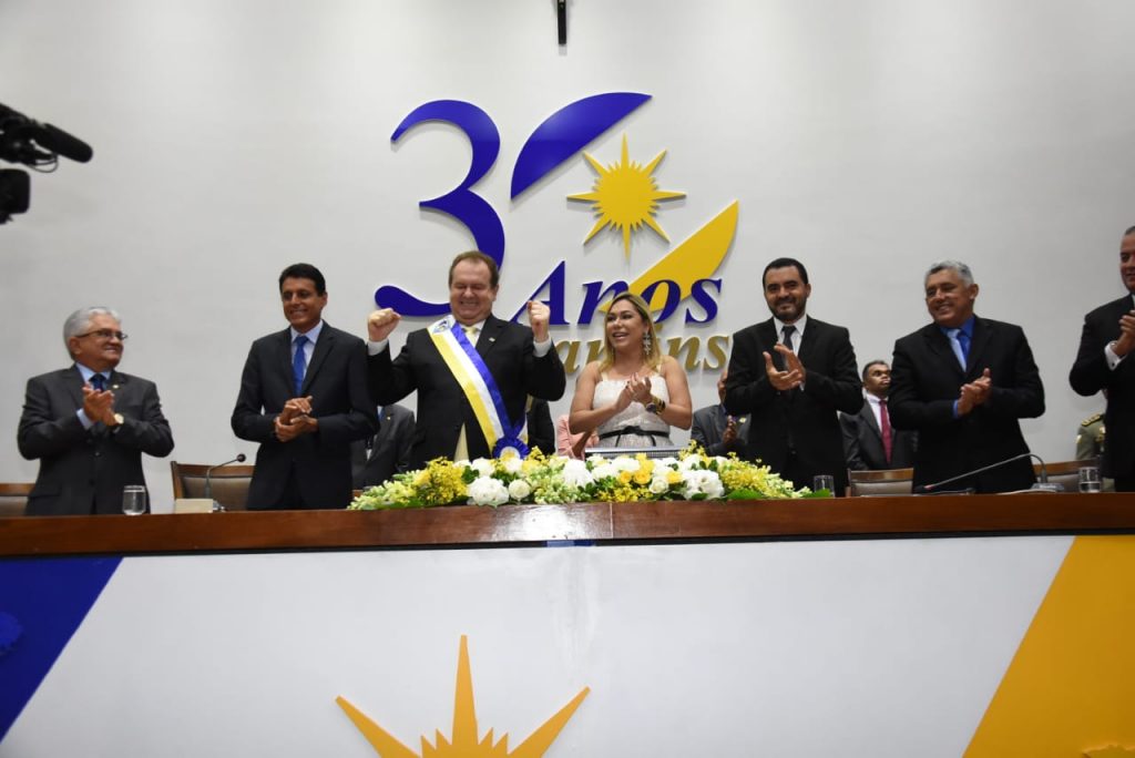 O governador Mauro Carlesse foi empossado na manhã desta terça-feira, 1º de janeiro, como governador do Tocantins para os próximos quatro anos. A cerimônia de posse de Carlesse e do vice-governador Wanderlei Barbosa teve início às 8h30, na Assembleia Legislativa, onde assinou o Termo de Posse e recebeu a faixa da presidente da Casa, deputada Luana Ribeiro. “A nossa responsabilidade é grande em administrar esse Estado e vou honrar cada dia desse mandato concedido pelas pessoas que acreditaram em mim”, destacou o governador ao assinar o Termo de Posse.