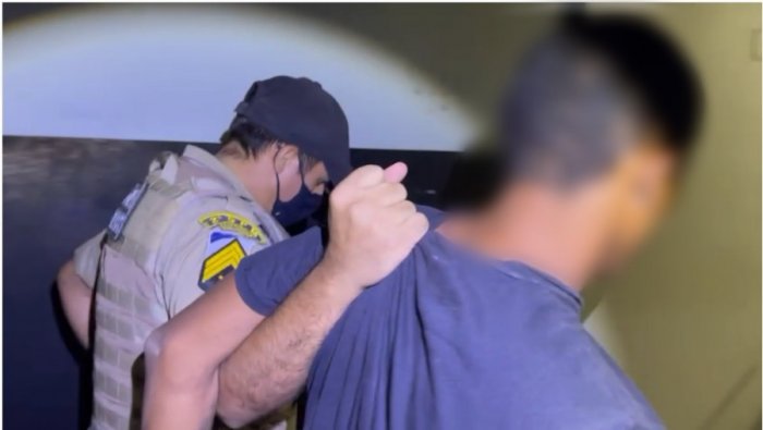 Militares fizeram buscas e encontraram o suspeito na casa onde mora. Ele foi encaminhado para uma delegacia de Polícia Civil.