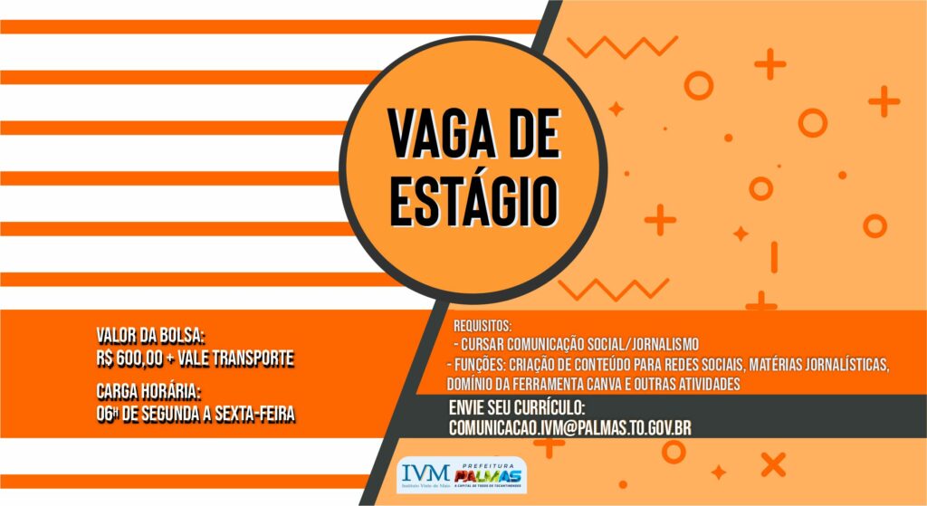 O Instituto 20 de Maio de Ensino, Ciência e Tecnologia (IVM) está com duas vagas de estágio abertas para estudantes de Comunicação Social ou Jornalismo. Os interessados em estagiar no IVM podem se candidatar à vaga enviando o currículo para o e-mail: [email protected], até a próxima segunda-feira, 10 de janeiro.