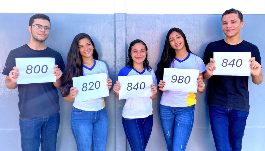 A estudante Nicolle Araújo Souza alcançou a nota 980 na redação; Sayane Kely tirou 900 pontos; Alicia Cunha ficou com 880 pontos; Gabriel Rodrigues tirou a nota 840 pontos; Kaic Carmargo obteve 800 pontos; Maria Luiza de Souza Gomes Vieira ficou com 840 pontos; Maria Mariana, com 820 pontos; e Rute Ana Nunes, com 800 pontos.