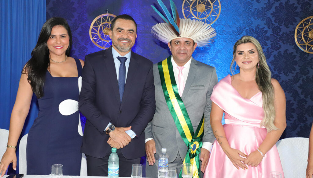 O governador do Estado do Tocantins, Wanderlei Barbosa, acompanhado da primeira-dama Karynne Sotero, participou na noite desta quinta-feira, 1º de janeiro, da cerimônia de posse do prefeito João Alberto Coelho Machado e da vice-prefeita, Jordana Monteiro, eleitos para o período 2025/2028. O evento foi realizado no Complexo Esportivo José Wilson Siqueira Campos. Na oportunidade o Governador reafirmou sua determinação em realizar o asfaltamento do trecho rodoviário da TO-010 na área indígena do município.