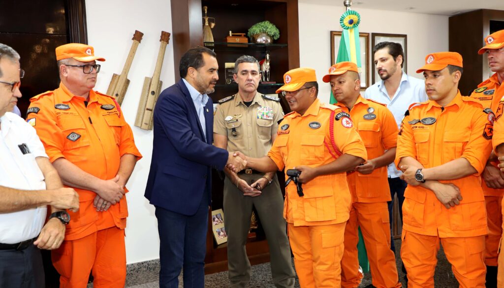 O governador do Tocantins, Wanderlei Barbosa, recebeu nesta quinta-feira, 16, a equipe da Companhia Independente de Busca e Salvamento (Cibs) do Corpo de Bombeiros Militar do Tocantins (CBMTO), responsável pelas buscas por vítimas do desabamento da Ponte Juscelino Kubitschek de Oliveira, na divisa com o estado do Maranhão. Na ocasião, o chefe do Executivo enalteceu o trabalho de todos os profissionais que atuam na força-tarefa e anunciou que os bombeiros serão condecorados pelo governo estadual. O encontro ocorreu no Palácio Araguaia Governador José Wilson Siqueira Campos e contou com a presença de representantes da Polícia Militar do Tocantins (PMTO).