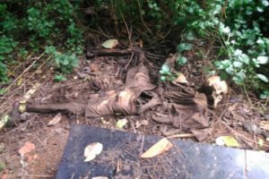 Ao chegarem no local, os policiais se depararam com o corpo e ao lado também acharam um par de sandálias, boné e caixa de fósforo.