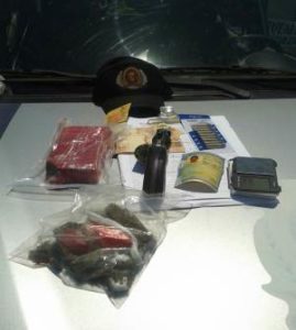 A Polícia Militar (PM) prendeu na manhã de domingo, 21, na região sul de Palmas, um homem acusado de tráfico de entorpecentes. Em poder do indivíduo os policiais apreenderam uma sacola de cor branca com três frações de substâncias similar à maconha prensada. Já na residência do acusado foi apreendida uma barra de substancia similar à maconha, uma balança de precisão, um revólver calibre 38, com quinze munições intactas de mesmo calibre, além de R$ 140,00 reais em dinheiro.