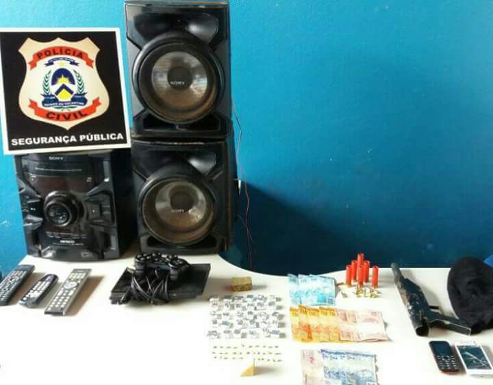 E, na tarde deste sábado, munidos com um mandado de busca e apreensão, os policiais civis da 5ª DRPC, com apoio de agentes da Casa de Prisão Provisória de Guaraí, foram até a residência, onde localizaram e apreenderam uma considerável quantidade de drogas, já preparada para a venda, dinheiro, duas armas de fogo, munição, bem como objetos sem comprovação de origem.
