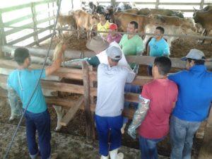 Durante o curso foram abordados temas como: conceito e vantagens da inseminação artificial; implantação da inseminação artificial; materiais necessários para prática da inseminação; manejo do botijão, uso correto do sêmen; controle zootécnico e prática em peças anatômicas e vacas.