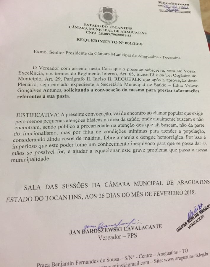 O pedido para o esclarecimento do caos na saúde de Araguatins se deu depois do clamor da população que diz que nem o básico está sendo oferecido pela atual gestão.