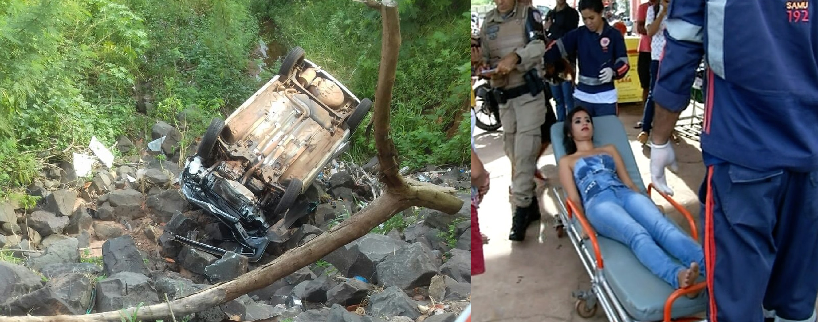Carro cai de altura de 20 metros e deixa estudante ferida em Araguaína