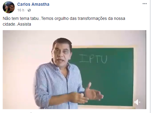 O prefeito de Palmas e presidente em exercício da Frente Nacional dos Prefeitos (FNP), Carlos Amastha, gravou um vídeo que vai circular nas redes sociais em que detalha as informações a respeito do Imposto Predial Territorial Urbano (IPTU) 2018 de Palmas. No vídeo, o gestor explica a base de cálculo, aborda os descontos e orienta a população que, em caso de dúvidas sobre os valores, procure um dos 17 pontos de atendimento destinados ao atendimento dos contribuintes.