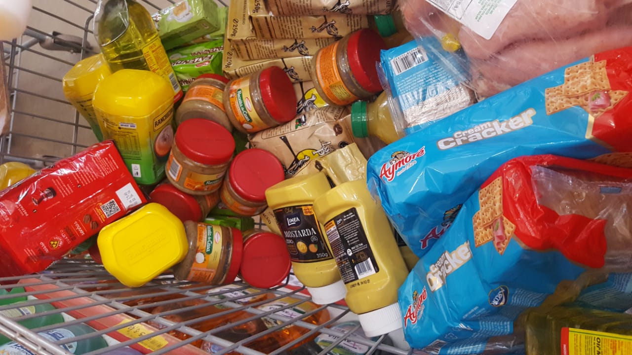 Foram apreendidos linguiças, temperos, café, macarrão instantâneo, queijo, maionese, farinha, pão de forma, bolacha, requeijão cremoso, cappuccino, sucos, cervejas, óleo de soja, molho de alho, extrato de tomate, cacau em pó, doce de leite, rapadura, salame defumado, iogurte, feite fermentado, torresmo, creme de leite, farelo de trigo, macarrão, refrigerante, fermento biológico, barra de chocolate, pipoca, coco ralado, amendoim, pizza, peito de frango, energético, hambúrguer, shampoo, amaciante, álcool em gel, detergente automotivo, silicone spray, limpa tudo, removedor de ceras, sabonete, antitranspirante e alvejante perfumado, entre outros.