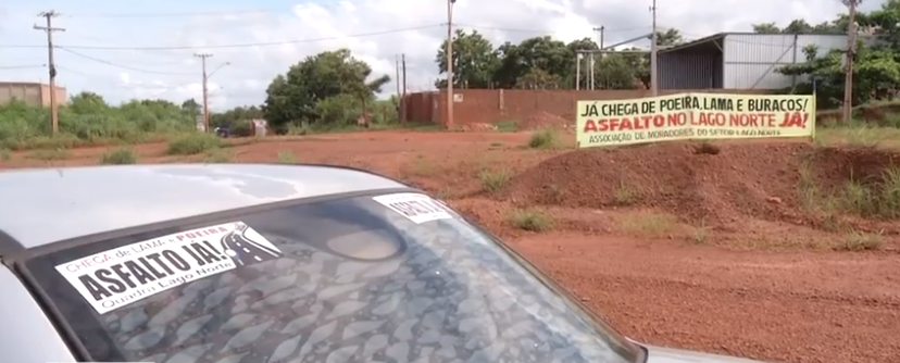 Os moradores da região norte de Palmas estão sofrendo com a falta de asfalto em vários bairros. No bairro Lago Norte a falta de pavimentação desgasta os carros, causa lama e buracos na época das chuvas e poeira na época da estiagem, com isso, as casas sempre estão sujas, gerando problemas de saúde e insatisfação para comunidade.