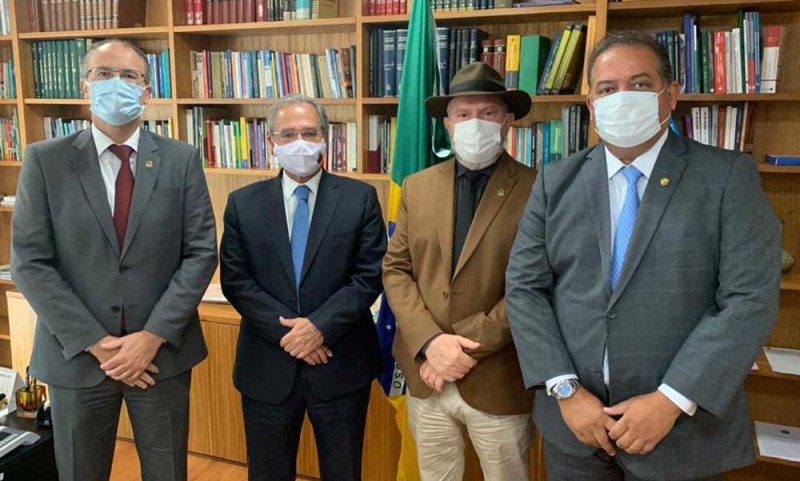 O governador do Estado do Tocantins, Mauro Carlesse, acompanhado do senador Eduardo Gomes, se reuniu nesta quinta-feira, 4, com o ministro da Economia, Paulo Guedes, em Brasília (DF), para tratar de parcerias e investimentos para o Tocantins.