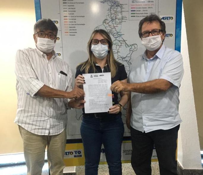 Acompanhado pelo deputado estadual Vilmar de Oliveira (SD), o prefeito de Tocantínia, Manoel Silvino (SD), esteve nesta sexta-feira (12), com a secretária de Estado da Infraestrutura, Juliana Passarin, buscando apoio para a realização do serviço de pavimentação asfáltica dos 7 km de estrada de chão que ligam Tocantínia a Lajeado, bem como, a recuperação da TO 342, no trecho que vai de Tocantínia à Aparecida do Rio Negro.