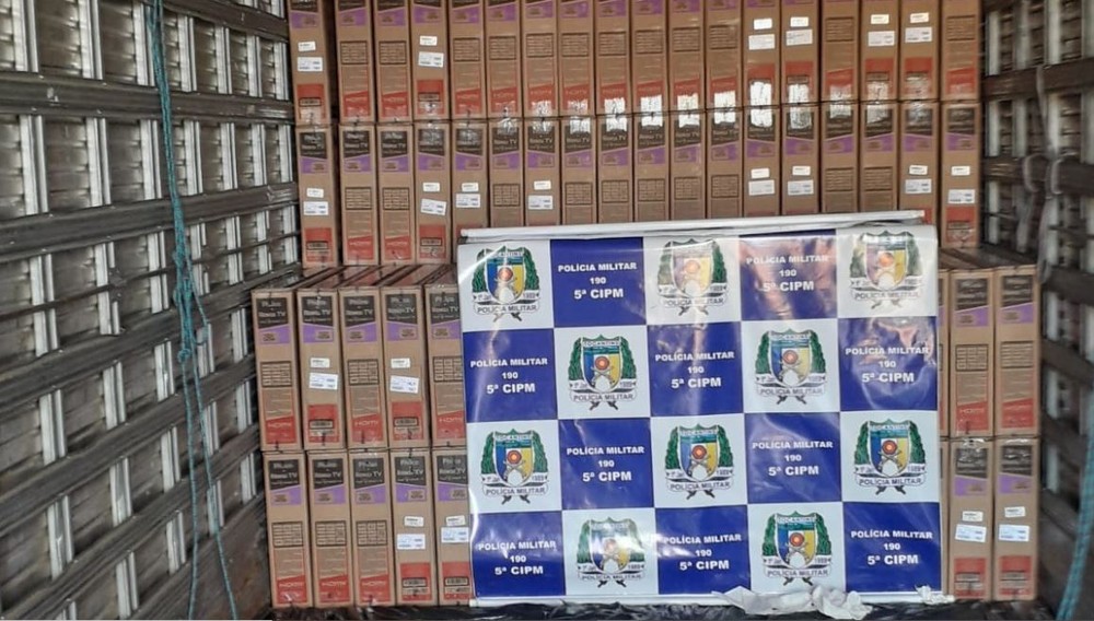 Foram recuperados 112 televisores de LED com 32 polegadas. Não havia nenhum motorista e ninguém próximo no local, então ainda não está claro porque os produtos foram abandonados pelos criminosos no local.