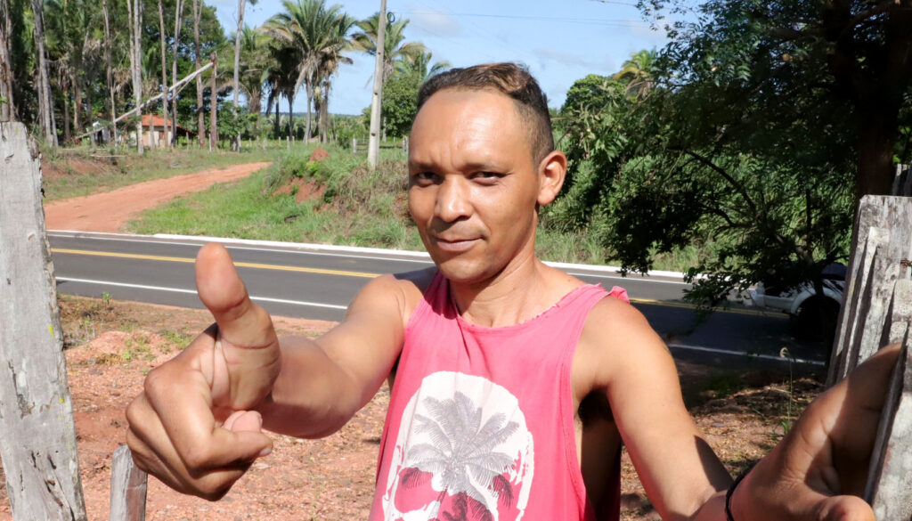 O lavrador Gilvan Pereira da Silva, 44 anos, mora na chácara São José, no Povoado Olho D’Água, há 20 anos. Chegou com a família, mas hoje vive apenas com o irmão Urbano, de 50 anos. Eles perderam os pais e seguiram morando na mesma casa. Enquanto uma pessoa que utiliza a bicicleta como meio de transporte, Gilvan relatou as dificuldades que tinha com a TO-210. “Era tanto buraco que tinha nessa estrada, que eu precisava vir devagar correndo o perigo de cair. Ainda mais a noite. Tinha um resto de asfalto, mas todo destruído. Então eu só agradeço ao Governo do Tocantins que melhorou a rodovia e nossa qualidade de vida”, disse.