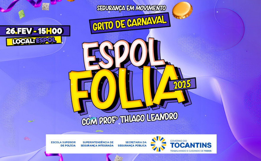 A Secretaria da Segurança Pública do Tocantins (SSP/TO), por meio da Escola Superior de Polícia (Espol), promove na próxima quarta-feira, 26, um aulão de dança simbolizando o Grito de Carnaval 2025. O evento acontecerá na sede da Espol, a partir das 15h, e promete ser um momento de descontração e interação entre os servidores.