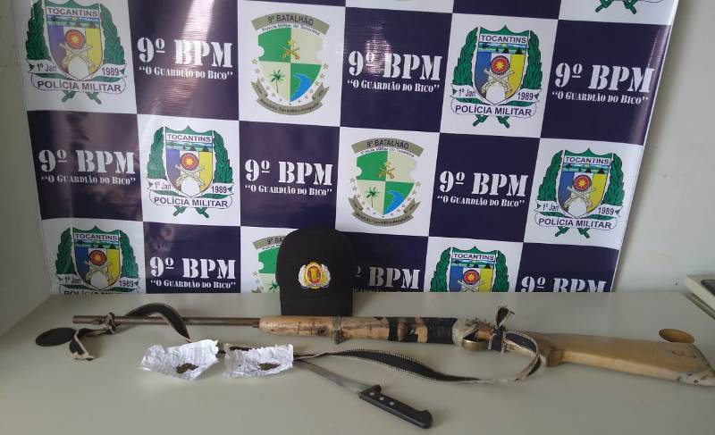 A Polícia Militar do Tocantins (PMTO) prendeu, nesta segunda-feira, 26, um homem de 32 anos no Bairro Santa Helena, em Axixá, por Porte Ilegal de Arma de Fogo e Posse de Entorpecente. Em poder do autor, os policiais militares apreenderam uma espingarda de fabricação artesanal, uma faca e duas porções de maconha.