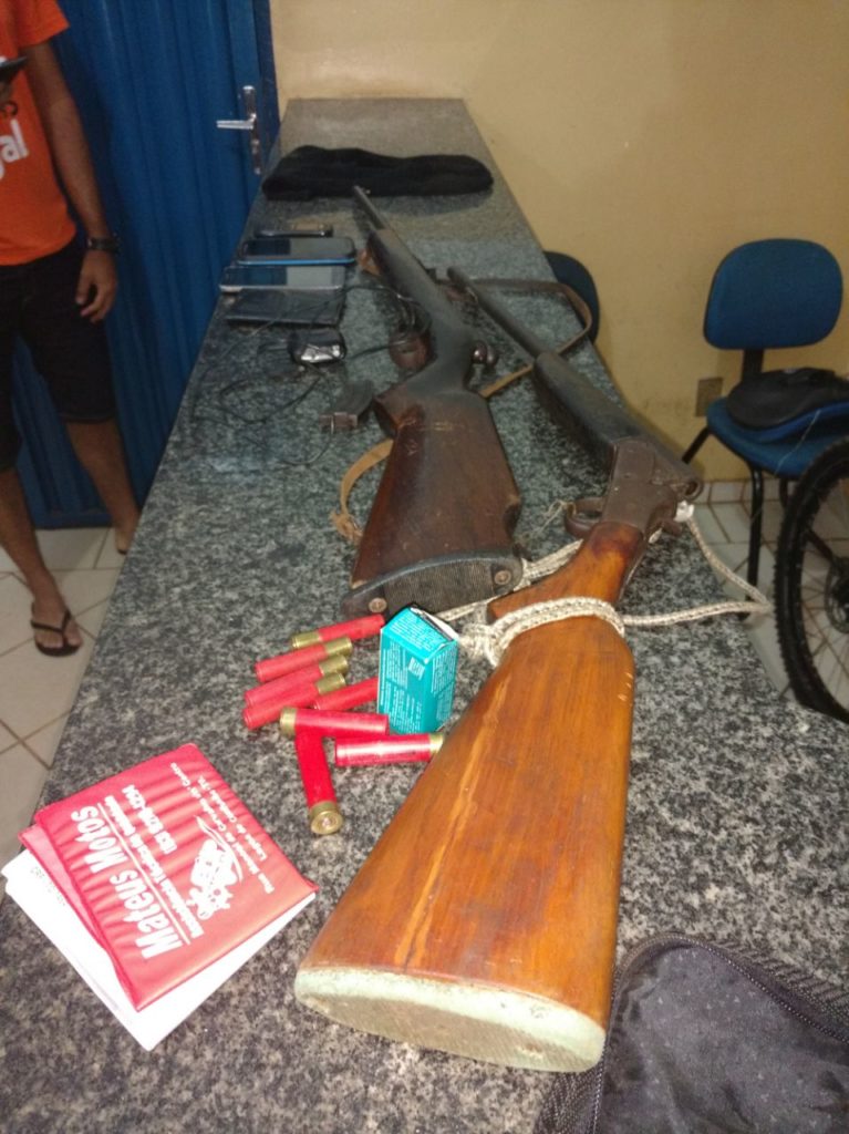 Foram apreendidas uma espingarda calibre 36 com seis munições intactas, uma espingarda calibre 22 com 14 munições intactas, duas munições calibre 32, um triturador forrageiro, três aparelhos celular, uma carretinha, dentre vários outros objetos subtraídos da propriedade.