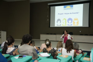 Ainda durante sua fala, a Promotora de Justiça fez um relato sobre o saldo do projeto Anjos da Guarda em 2017, quando a equipe do Núcleo Maria da Penha do MPE visitou 15 escolas de Palmas. Crianças e pré-adolescentes conheceram a Lei Maria da Penha e aprenderam a identificar e denunciar situações de violência doméstica e familiar contra a mulher, em casa, na escola ou na comunidade. Ao fim de cada visita, os estudantes recebem certificados de “Guardião do Lar”, uma forma de reforçar que eles foram capacitados a identificar, prevenir e combater a violência doméstica e familiar contra a mulher.