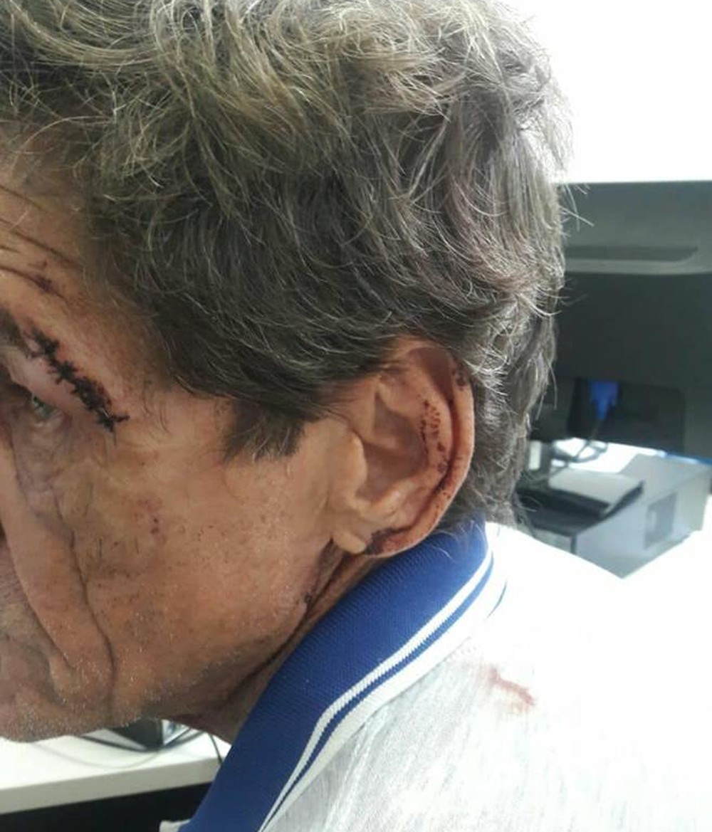 O idoso foi ferido no rosto e precisou levar vários pontos na sobrancelha esquerda. (G1)