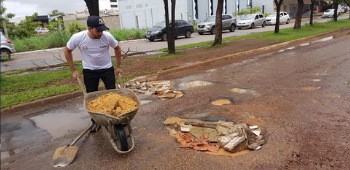 O empresário Rui Fernando Simon, proprietário de um restaurante localizado na quadra 104 Norte, no centro de Palmas resolveu improvisar uma operação tapa buracos na rua NE 03, em frente ao seu estabelecimento comercial. O motivo, segundo alega, é que a Prefeitura de Palmas não tomou as providências cabíveis para tampar os buracos existentes na via.