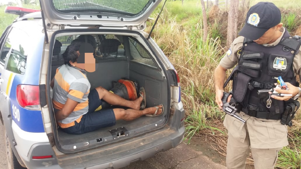 A prisão aconteceu a partir das 09h55 desta segunda-feira, 04, na TO-164, no Distrito de Jacilândia, zona rural do município de Araguanã-TO, após uma mulher de 27 anos acionar a Polícia Militar informando que um homem trajando camiseta amarela, bermuda e pilotando uma motocicleta Honda Fan, cor vermelha, de posse de uma arma de fogo, roubou-lhe seu aparelho celular e saiu rumo ignorado.