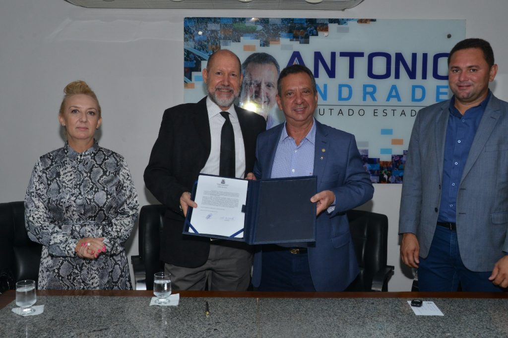 A cerimônia aconteceu no gabinete da presidência da Casa, a solenidade contou com a presença de algumas autoridades, entre elas a promotora aposentada, Maria Roseli de Almeida, esposa do Dr. Alcir, e o promotor, também aposentado e pré-candidato a vereador de Palmas, pelo PTB, Pedro Geraldo.