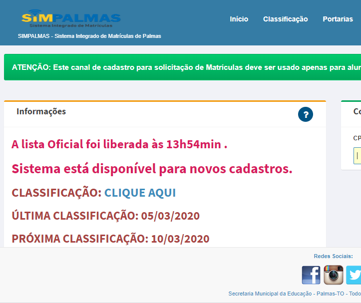 As demais listas divulgadas terão vão adotar a ordem dos critérios pelo município. (G1/TO)