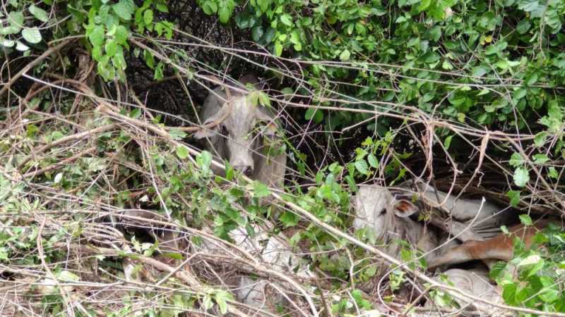 Os animais se espalharam pelo local, ocupando o mato na beira da rodovia.