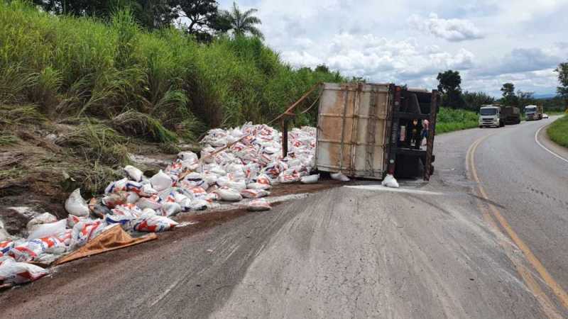 Uma carreta carregada de sal tombou quando contornava uma curva na Rodovia TO-040, no município de Dianópolis, na tarde desta segunda-feira, 09. O motorista, Ernesto Carlos de Almeida, foi socorrido pelo Corpo de Bombeiros Militar.