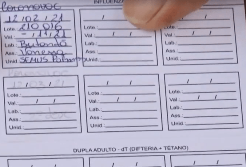 A senhora Maria Dolores Elias tomou a primeira dose no dia 12 de fevereiro. Só que a segunda dose ainda não foi aplicada. Um pouco frustrada. Tem mais de 30 dias vencido o prazo, tinham marcado para voltar no dia 12 do três, só que eu encontrei vacina nos lugares onde a gente foi, lamentou ela.