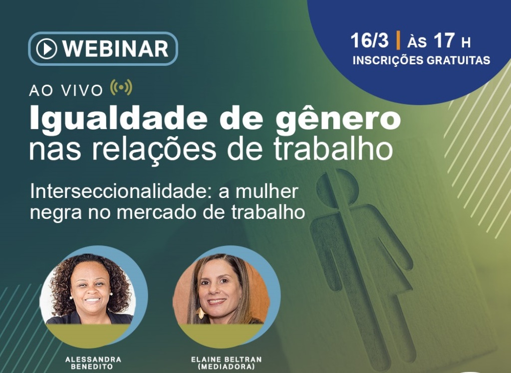 A Associação dos Advogados (AASP) promove na terça-feira, 16/3, às 17h, o webinar gratuito “Igualdade de gênero nas relações de trabalho.”