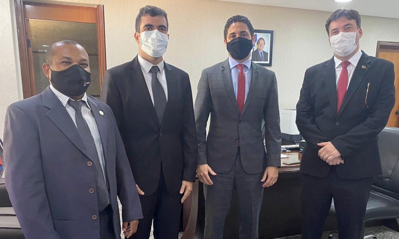 O secretário-chefe da Casa Civil, Rolf Vidal, recebeu nesta terça-feira, 23, em seu gabinete no Palácio Araguaia, o deputado estadual Ricardo Ayres, acompanhado do presidente da Ordem dos Advogados do Brasil – Seccional Tocantins (OAB/TO), Gedeon Pitaluga, e o presidente da Comissão de Igualdade Racial da OAB/TO, Domingos Rodrigues Silva.  O objetivo foi discutir a participação de pessoas com deficiência em concursos públicos, cotas raciais e o enfrentamento da covid-19 no Estado.