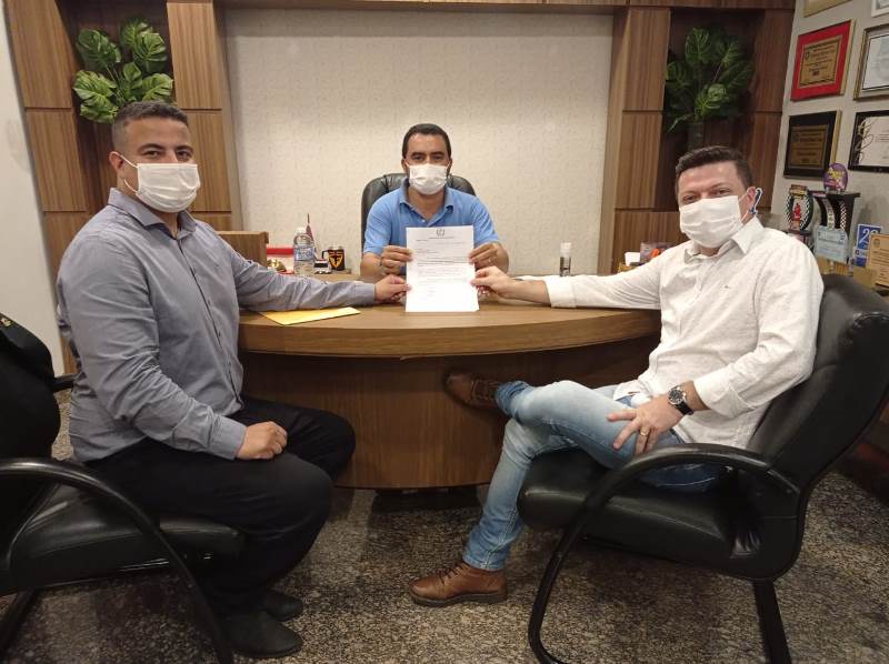 O presidente da Câmara de Vereadores de Colinas, Leandro Coutinho Noleto, ao lado do vice-presidente, Augusto Agra, e dos vereadores Daniel Garrincha, Antônio Pedrosa, Genival Dourado, apresentaram ao Vice-governador Wanderlei Barbosa a solicitação de unidades de terapia intensiva (UTI) para o combate ao coronavírus no município.