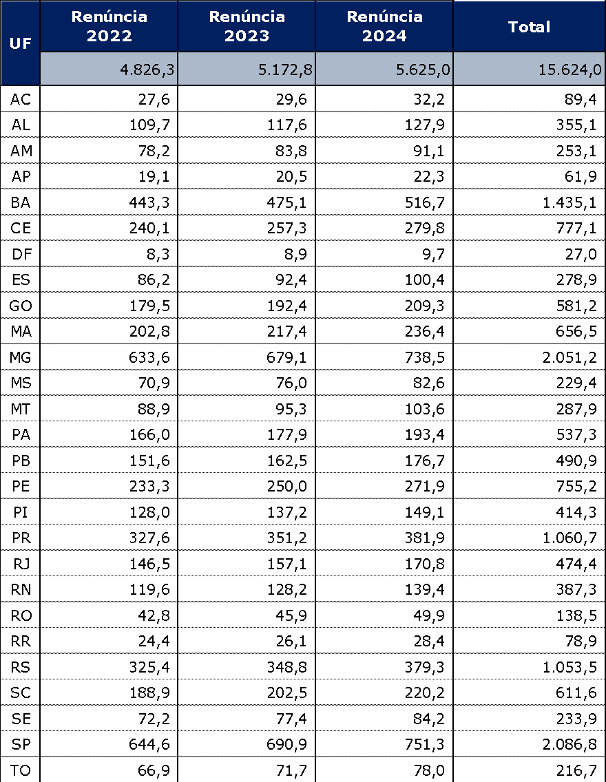 Estimativa da renúncia do IPI por Unidade da Federação (em R$ milhões)