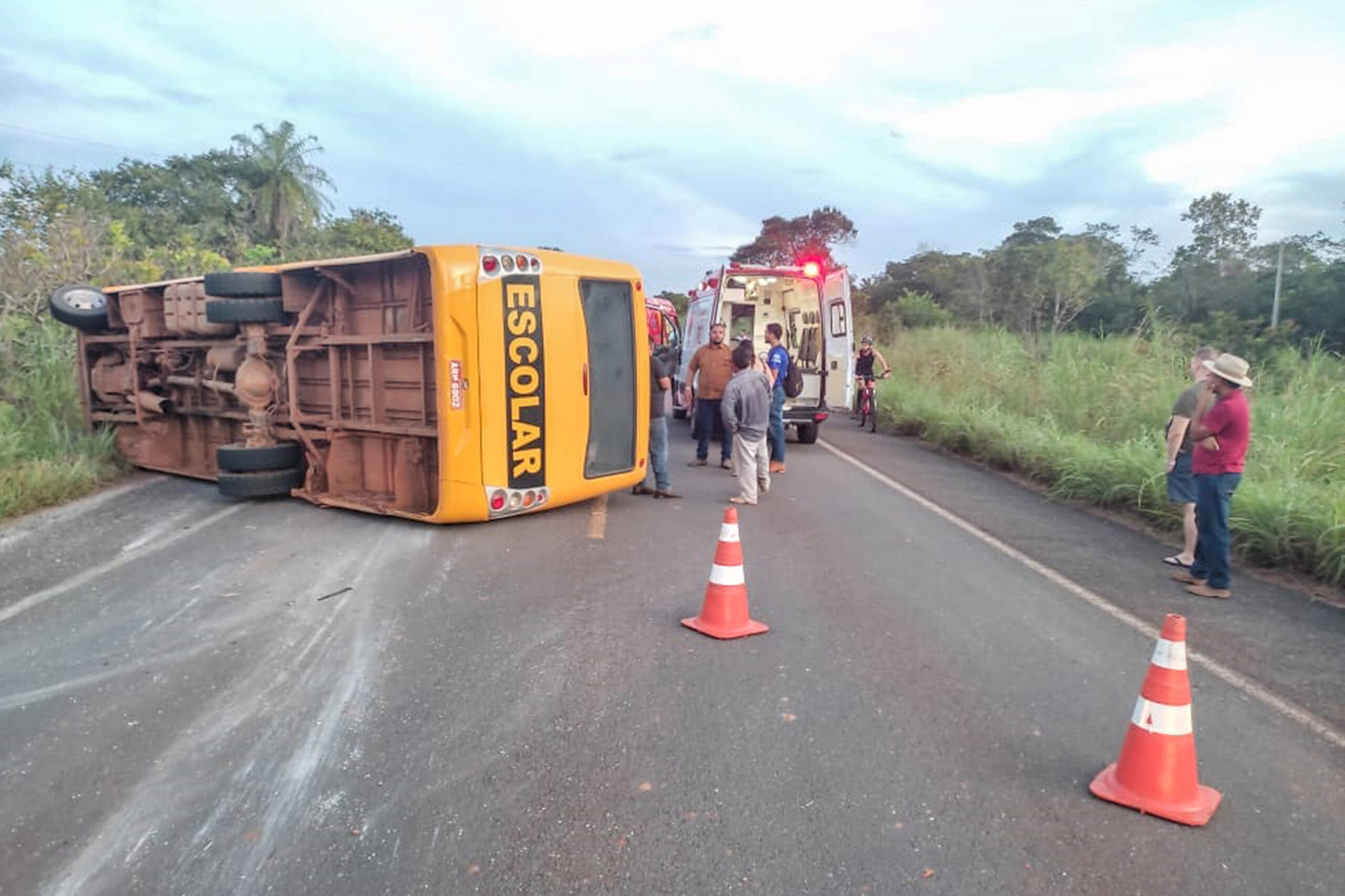 Socorristas do 2º Batalhão de Bombeiros Militar, em Araguaína, prestaram atendimentos às vítimas de um capotamento envolvendo um ônibus escolar, na zona rural do município, no Norte do Tocantins. O acidente foi por volta das 19h14, desta quinta-feira, 04. O motorista pode ter perdido o controle da direção.