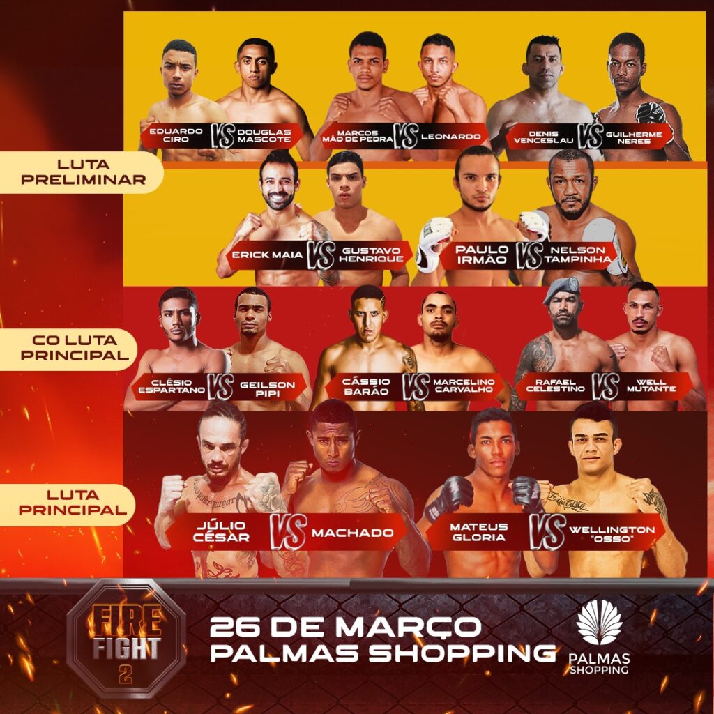 O Fire Fight 2 reúne lutadores do Tocantins, Maranhão,  Pará,  Goiás, Distrito Federal e Paraná. Os ingressos do evento estão disponíveis para venda na Laser Motors, localizada na 104 sul, em frente ao Corujão Lanches. A pesagem dos atletas acontece também no shopping, às 19h, desta sexta-feira, 25 e será aberta ao público.