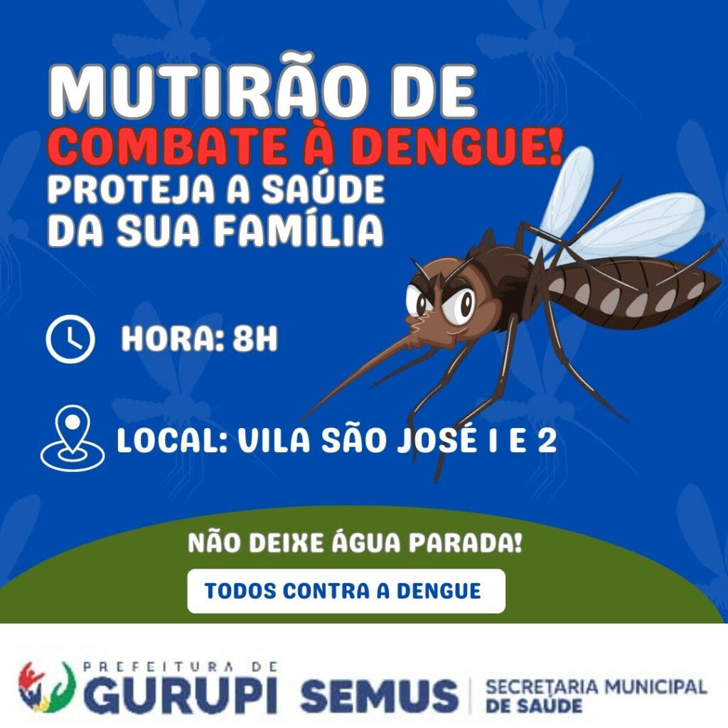 A Prefeitura de Gurupi, por meio da Secretaria Municipal de Saúde (SEMUS), convida a imprensa, os profissionais de comunicação e a população em geral para participar de mais um Mutirão de Combate à Dengue realizado pelos Agentes de Combate às Endemias (ACEs) de Gurupi.
