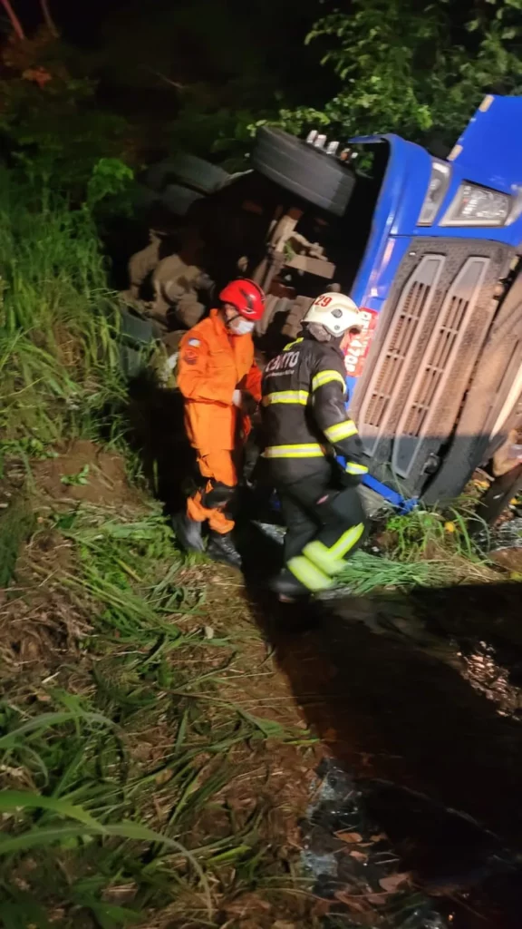 O homem estava consciente e verbalizando, mas com hemorragia externa em várias partes do corpo. Devido às características do local onde o acidente aconteceu os militares precisaram de apoio de um trator da prefeitura de São Bento para estabilizar a cabine do caminhão.